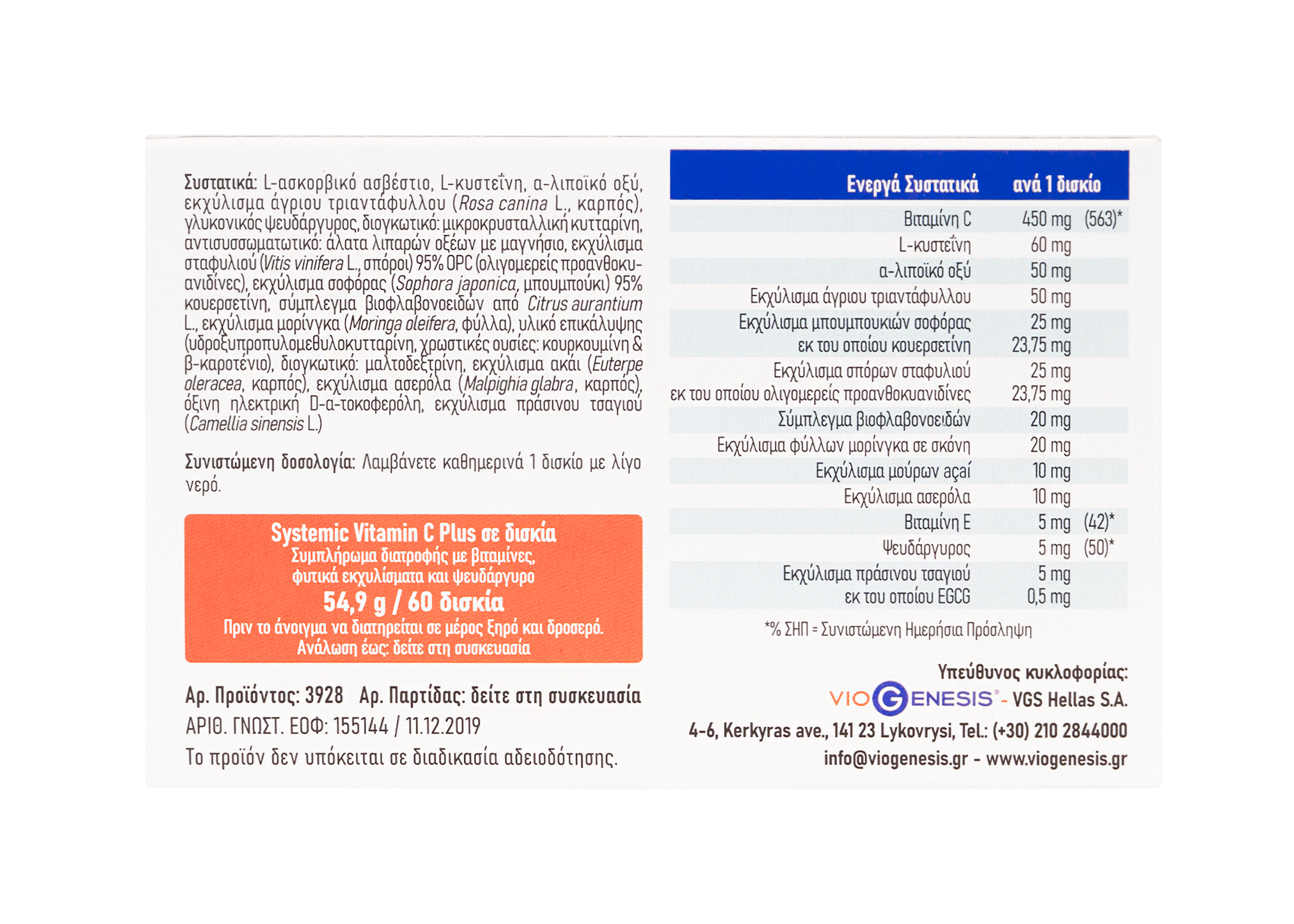 VioGenesis Systemic Vitamin C Plus 60 tabs bottle cells back