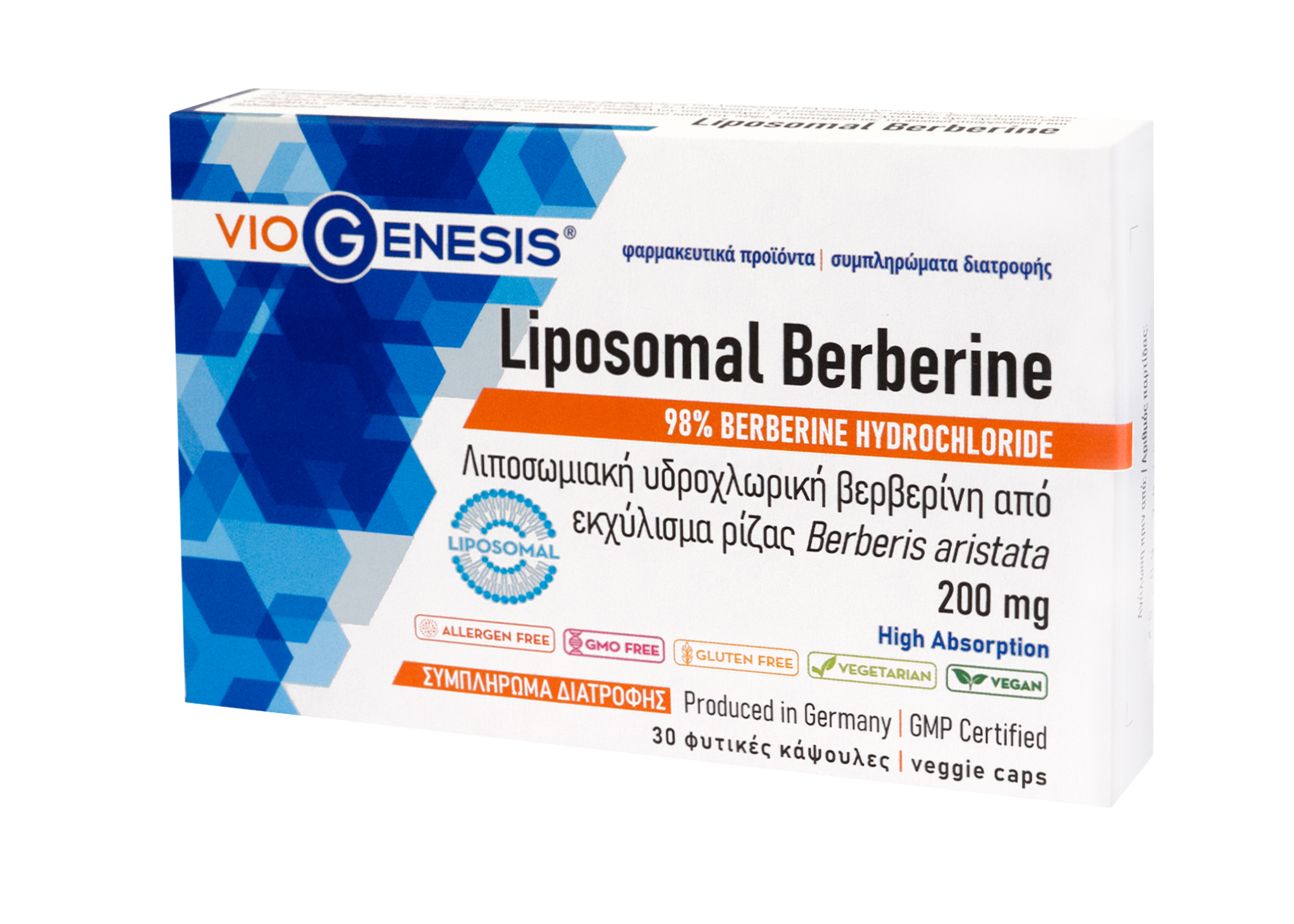 VioGenesis Liposomal Berberine 30 caps box cells