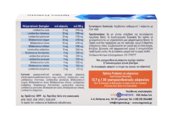 Optima Probiotic is a probiotic formula with a content of 22 billion per capsule in 13 strains, intestinal absorption that promotes good gastrointestinal health.