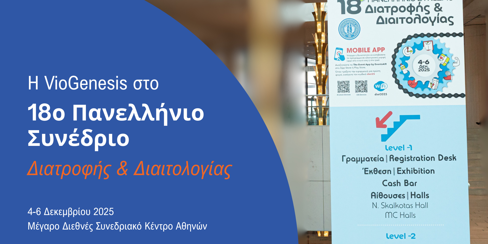 Η VioGenesis συμμετείχε στο 18ο Πανελλήνιο Συνέδριο Διατροφής & Διαιτολογίας, που πραγματοποιήθηκε στις 4–6 Δεκεμβρίου 2025, στο Μέγαρο Διεθνές Συνεδριακό Κέντρο Αθηνών, υπό την οργάνωση της Ένωσης Διαιτολόγων – Διατροφολόγων Ελλάδος (ΕΔΔΕ).