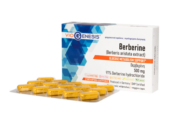 Το VioGenesis Berberine περιέχει σταθεροποιημένο εκχύλισμα του φυτού Berberis aristata, το οποίο αποδίδει σε ποσοστό 97% υδροχλωρική βερβερίνη.